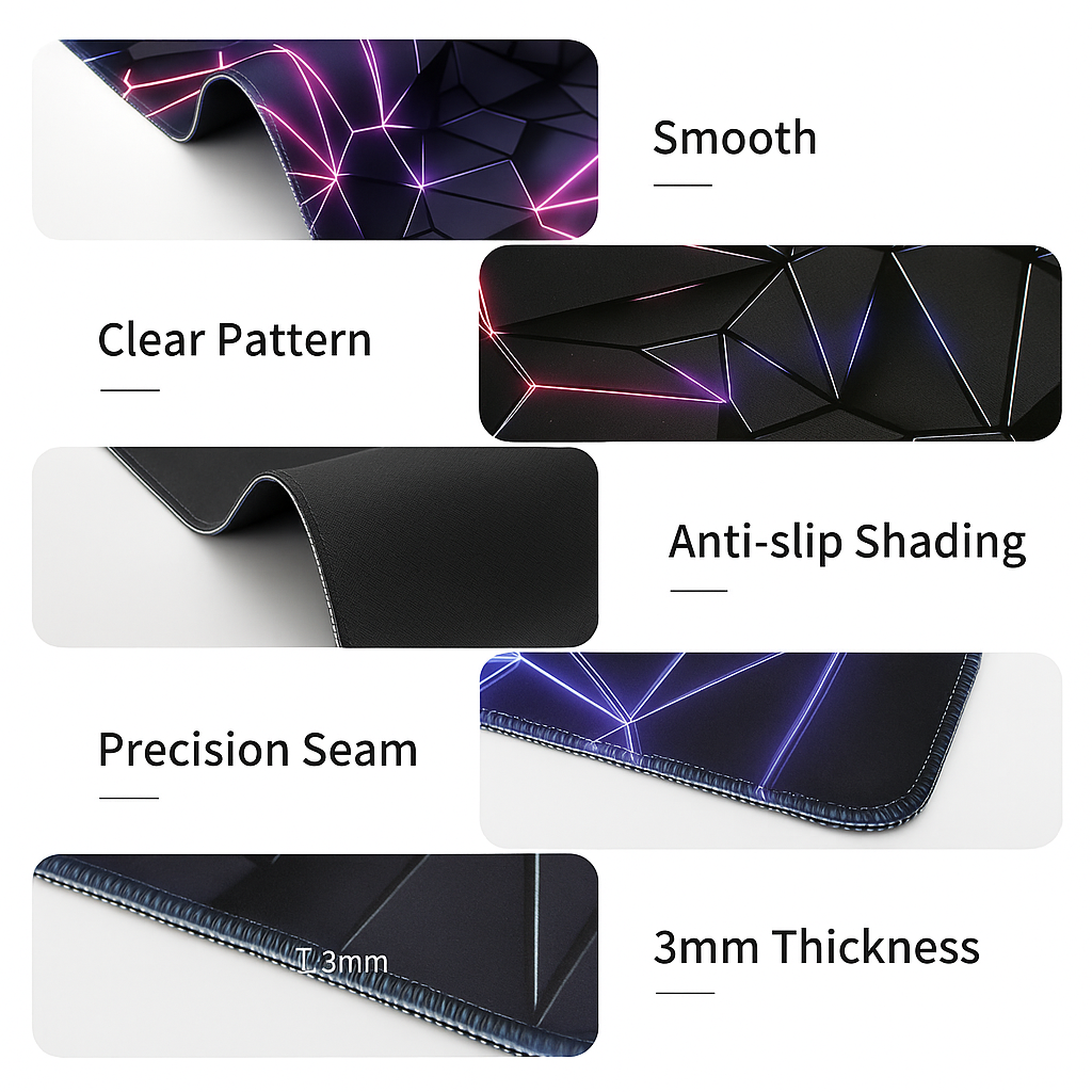 • This gaming mouse pad is made of 3mm thick rubber, and the bottom can firmly grip the desktop to fix the mouse pad on the table, allowing your mouse to slide more smoothly.