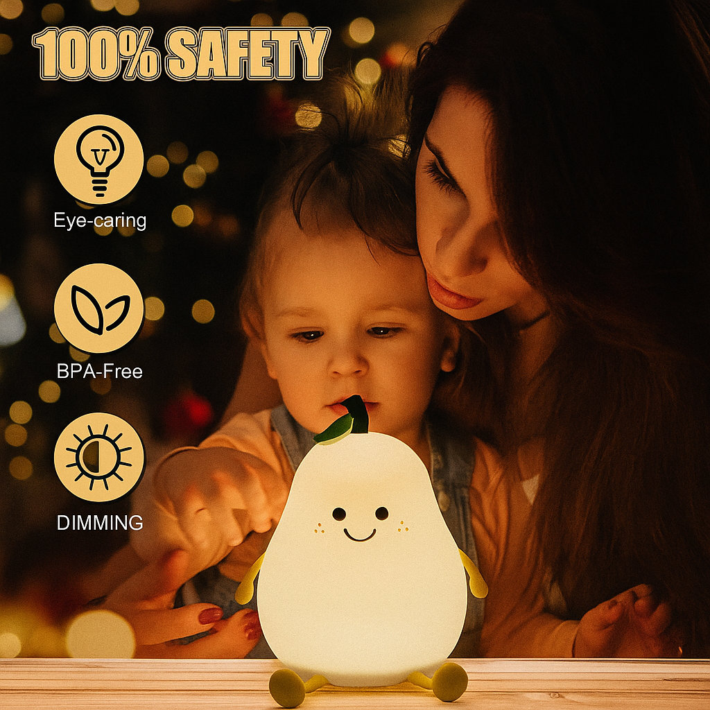 ⏩【Soothing Pear Nursery Night Light】 Put this pear night light on the bed, the soft light accompanies children to sleep, offers a gentle and calming glow for children of all ages to drive away darkness, so parents can also get a restful night's sleep. No longer worried about struggling with bedtime.