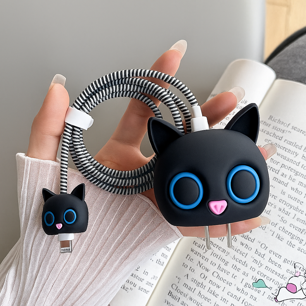 Protective case for 18W-20W iPhone Charger Adapter (Black Cat Face )